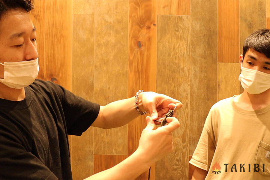 僕自身、手先がさほど器用じゃないということもあってかロープワークは苦手分野なのですが、やってみるとアラ不思議。いとも簡単に結べてしまいました。元々サルカンに結びつけるためのものなので、キャンプであればテントのループやタープのハトメに結ぶと有効なのではないでしょうか?結び目もキレイでかっこいいので、覚えておくと意外なシーンで役立つかもしれませんね。